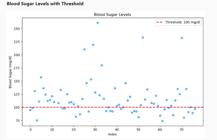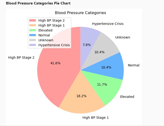 The attached charts show the distribution of blood pressure and blood sugar levels among patients. While blood sugar levels appear acceptable (considering many results were random and not fasting), blood pressure test results are concerning.